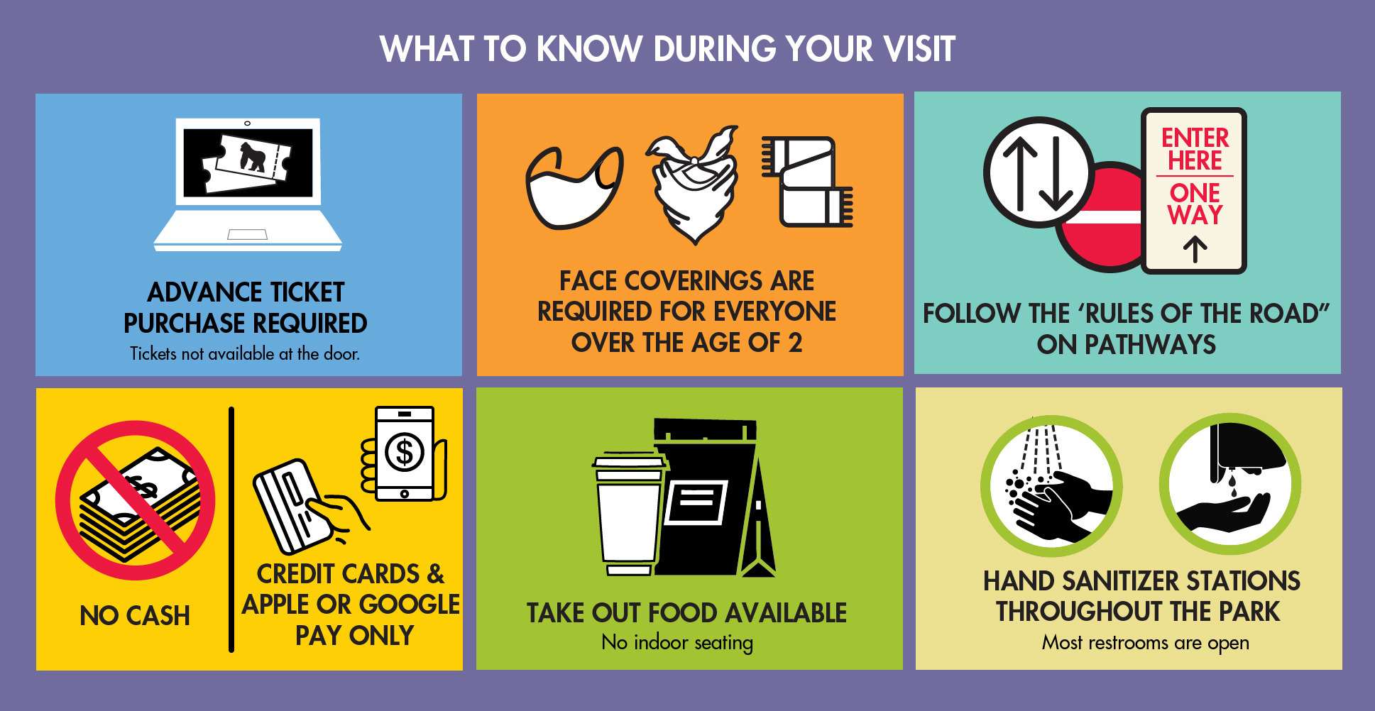 • The zoo will not be accepting any cash. Apple Pay, Google Pay and credit card transactions only.