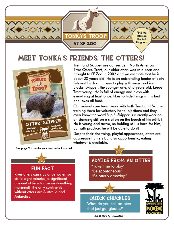 Join our miniature horse, Tonka, on his many adventures through SF Zoo! This month, meet Skipper the North American River Otter and learn fascinating facts otters.